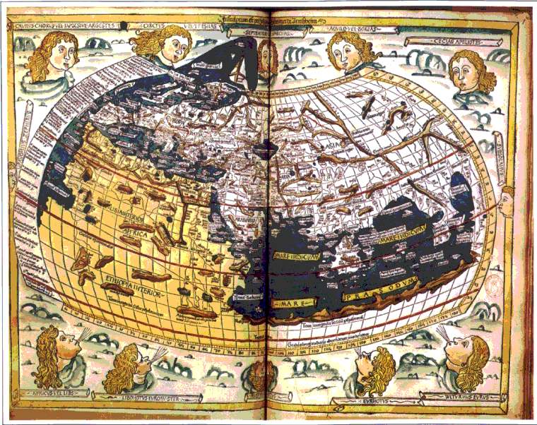 paral·lel central. Donnus Nicolaus Germanus només apuntava els meridians i els paral·lels en els marges dels mapes regionals i no els traçava pas en tota la seva extensió.